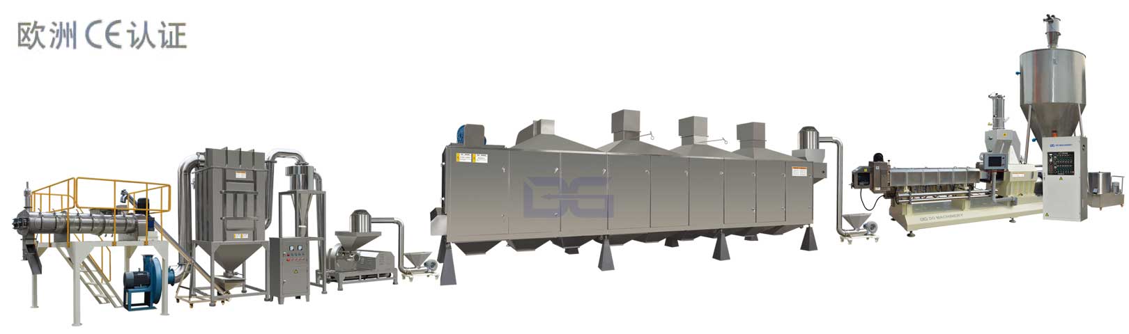 雙螺桿擠壓膨化機(jī)生產(chǎn)變性淀粉,是變性淀粉生產(chǎn)的一種新技術(shù)。該技術(shù)是將輸送混合、加溫加壓、剪切熔融等操作集于一體的雙螺桿擠壓膨化機(jī)做反應(yīng)器,進(jìn)行淀粉的熱化學(xué)變性;是高溫、短時(shí)、低水分、高能量的熱化學(xué)過程,可把幾個(gè)化學(xué)反應(yīng)放在單一的設(shè)備中進(jìn)行,時(shí)空產(chǎn)量高;設(shè)備配套簡單、占地小、操作方便;雙螺桿擠壓機(jī)作為反應(yīng)器可連續(xù)生產(chǎn)氧化、酯化、交聯(lián)、醚化等多種類型的變性淀粉,且無污水產(chǎn)生;雙螺桿擠壓機(jī)具有更高的混合效率、過程控制好、產(chǎn)品均一,是快捷、連續(xù)生產(chǎn)多種變性淀粉的一種經(jīng)濟(jì)可行的加工方法。